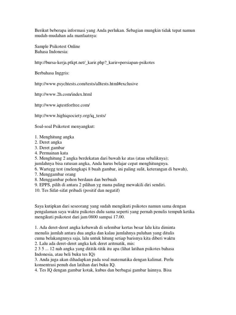 Akan tetapi, kabar yang cukup membahagiakan yaitu guna bisa mengambil ijazah tersebut atau jaminan yang lainnya amatlah mudah. Dengan demikian peluang anda untuk lulus psikotes masuk kerja lebih besar. Anda dapat mengetes seberapa tinggi iq anda dan mengetahui hasilnya dalam satu kali tes. Saat ini indomaret tercatat memiliki lebih dari 16.000 gerai. 3 menit membaca oleh cekaja pada november 21, 2017.